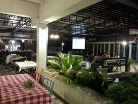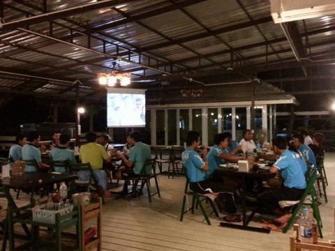 สวนอาหารบ้านพลอย ถ่ายทอดฟุตบอลบนจอโปรเจ็คเตอร์ บรรยากาศชิวๆ ที่นั่งมีหลังคา ไม่ต้องกังวลว่าฝนตกจะทำให้พลาดการดูบอลนัดสำคัญค่ะ
