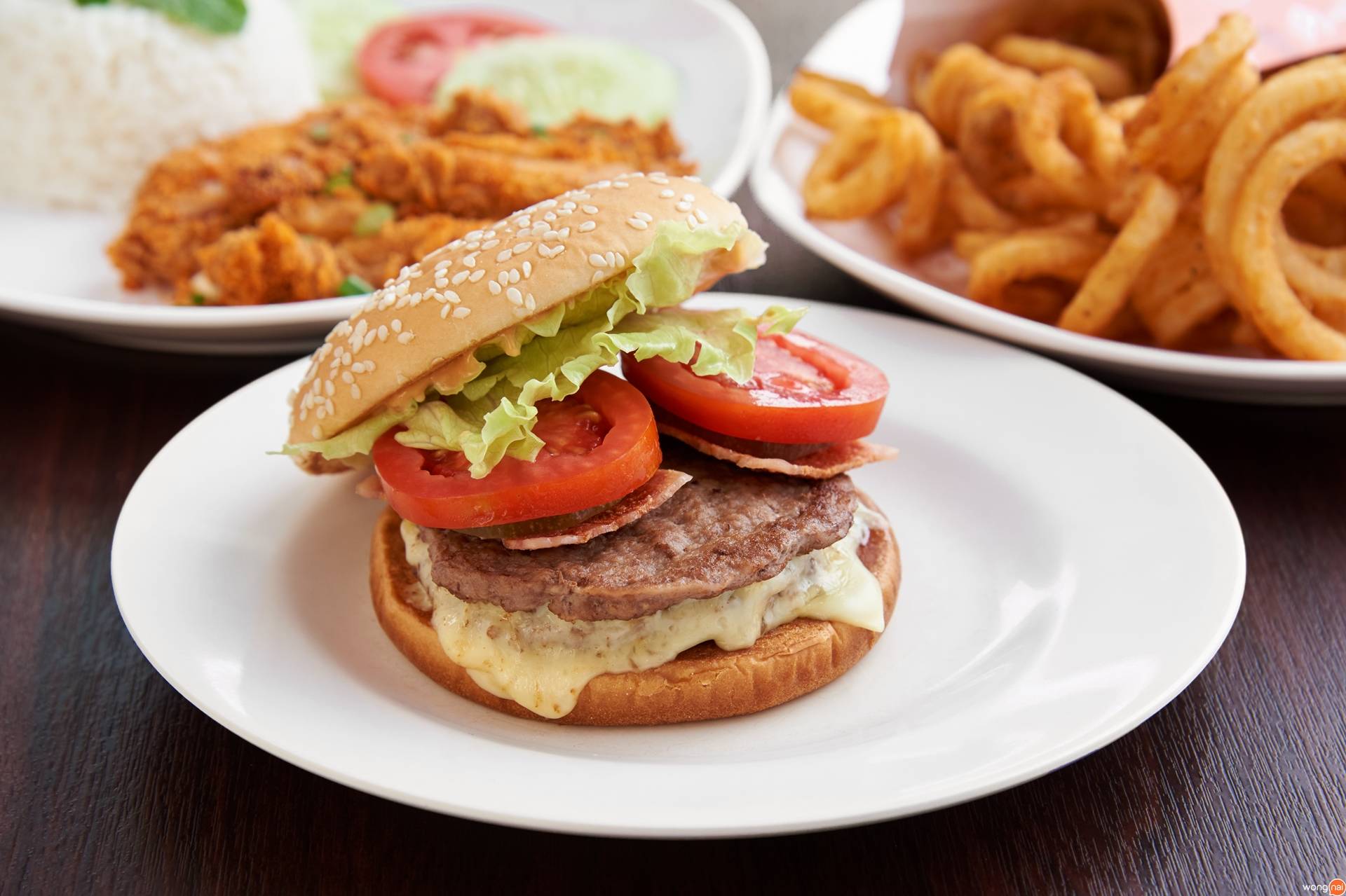 “โมซ่าเบอร์เกอร์” แป้งขนมปังนุ่มๆ สอดไส้แบบดับเบิ้ลด้วยเนื้อเบอร์เกอร์สองชิ้น โรยผงปรุงสูตรเฉพาะ พร้อมมายองเนส และผักอื่นๆ เพิ่มดีกรีความฟินให้เต็มอิ่มด้วยชีสแผ่นที่อบมาจนเยิ้ม