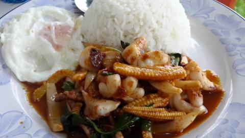ข้าวผัดพริกแกงหมูกรอบ 40 บาท