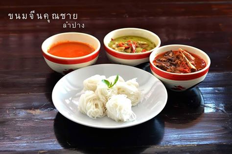 " ร้านขนมจีนเจ้าเก่า ต้นตำรับจากคุณย่าเปิดขายมานานกว่า 50 ปี มีทีเด็ดอยู่ที่ใช้เตาถ่านในการทำจึงมีนความหอมอร่อยเฉพาะตัว บรรยากาศในร้านยังคงสภาพเก่าทั้งจาน ชาม โต๊ะ หรือแม้กระทั่งหม้อที่บ่งบอกการผ่านสมรภูมิรบมาอย่างโชกโชน นอกจากนี้ยังมีเครื่องเคียงมีทั้งแคบหมู หนังปอง(หนังควาย) ใครอยากชิมถ้าหากตรงมาซอยป่าขาม 1 ซอย สาธารณสุขลำปาง ร้านจะอยู่ตรงข้ามกับ สำนักงานสิ่งแวดล้อม ภาคที่ 2