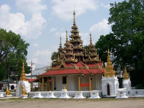 วัดศรีชุม ตั้งอยู่ที่ถนนศรีชุม-แม่วะ ตำบลศรีชุม อำเภอเมือง เป็นวัดพม่าที่ใหญ่ที่สุดในบรรดาวัดพม่าที่มีอยู่ในประเทศไทยทั้งหมด 31 วัด สร้างใน พ.ศ. 2433 โดยคหบดีพม่าชื่อ อูโย ซึ่งติดตามชาวอังกฤษเข้ามาทำงานป่าไม้ในประเทศไทย เมื่อตนเองมีฐานะดีขึ้นจึงต้องการทำบุญโดยสร้างวัดศรีชุมขึ้นในตำบลสวนดอก จุดเด่นของวัดนี้เดิมอยู่ที่ พระวิหาร ซึ่งเป็นอาคารครึ่งตึกครึ่งไม้มีศิลปะการตกแต่งแบบล้านนาและพม่า หลังคาเครื่องไม้ยอดแหลมแกะสลักเป็นลวดลายสวยงามมาก แต่เป็นที่น่าเสียดายว่าเกิดเหตุเพลิงไหม้พระวิหารทั้งหลัง เมื่อตอนเช้าตรู่วันที่ 16 มกราคม พ.ศ. 2535 คงเหลือเพียงไม้แกะสลักตรงซุ้มประตูทางขึ้นวิหารเท่านั้น เป็นลวดลายพรรณพฤกษาฉลุโปร่ง ปัจจุบันวัดได้รับการบูรณะขึ้นใหม่และยังมีชิ้นส่วนเครื่องประดับอาคารที่ถูกไฟไหม้ไปจัดแสดงไว้ด้านหลังวิหาร วัดศรีชุมได้รับการจดทะเบียนเป็นโบราณสถานเมื่อ พ.ศ. 2524
